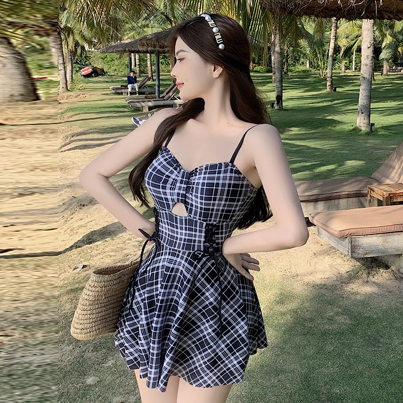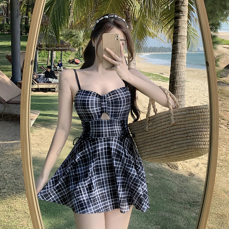 Sexy fairy fan swimsuit conservative new Korean ins wind bath hot spring swimsuit female summer one-piece cover belly to show thin