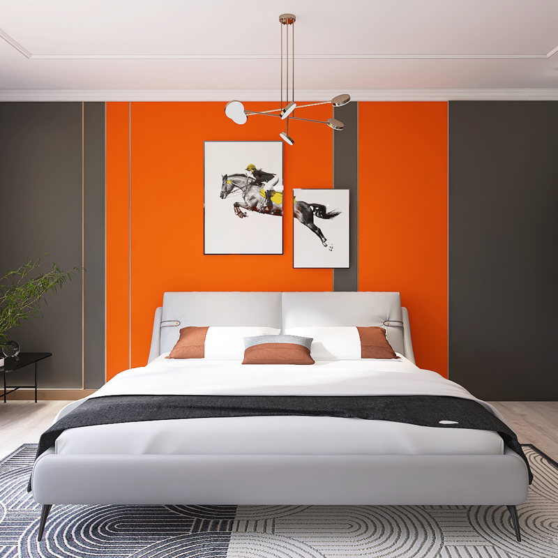 Modern light luxury hermès orange wall plate bamboo fiber grille integrated board living room bedroom pure fiber board