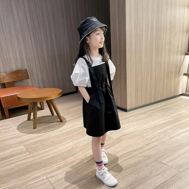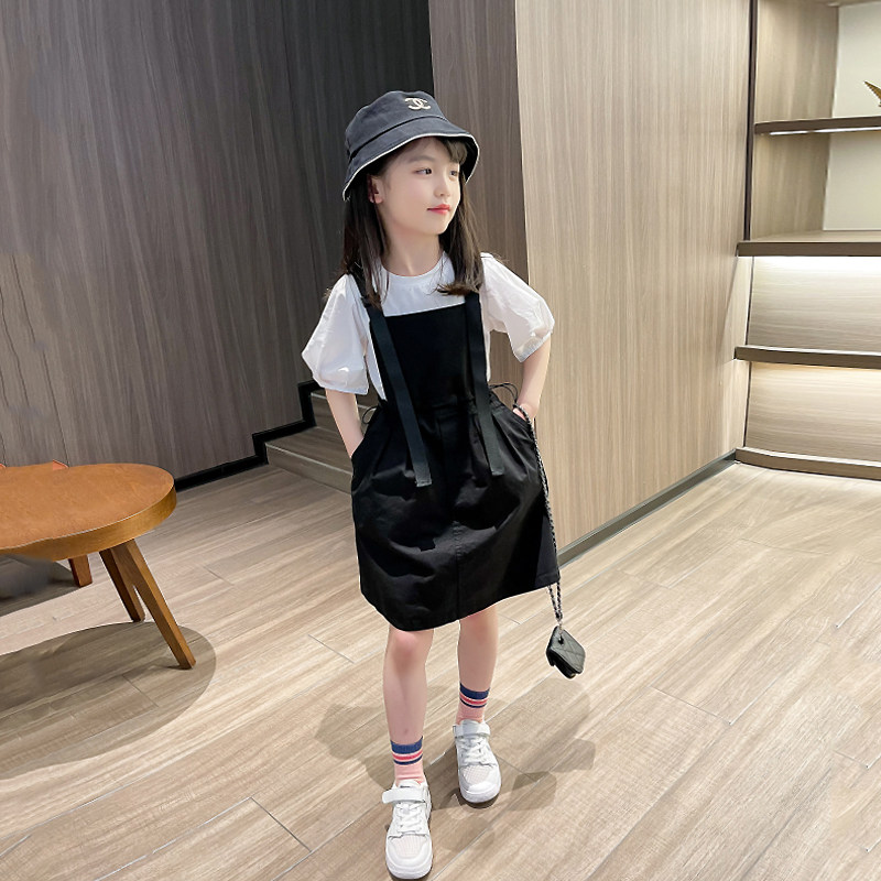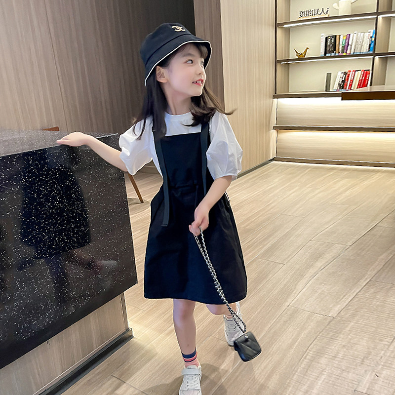 Girls' foreign dress 2022 new Summer Ocean sends children CUHK children's slim fit with short sleeves Two sets of child bottling