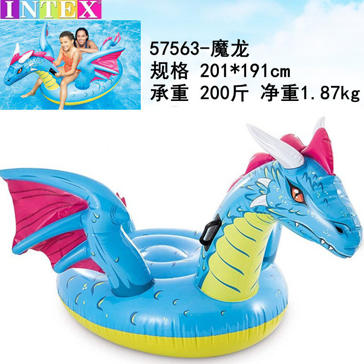 INTEX's new magic dragon sits on swimming circle Children's adult water thickened inflatable dinosaur crocodile floating bed swimming ring