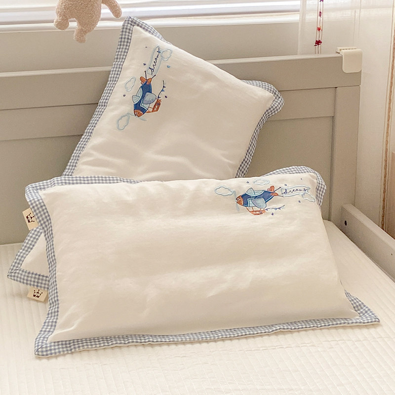 Class A non-fluorescent ultra soft double layer yarn pure cotton child pillowcase 30 x 50 embroidered full cotton pillowcase 40 x 60