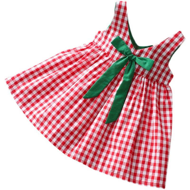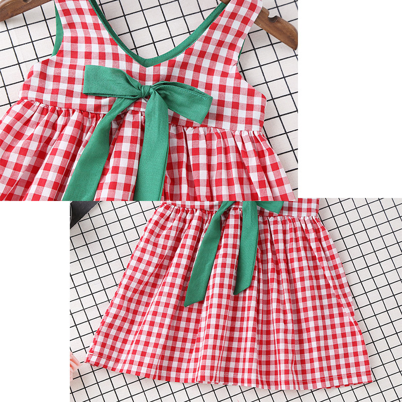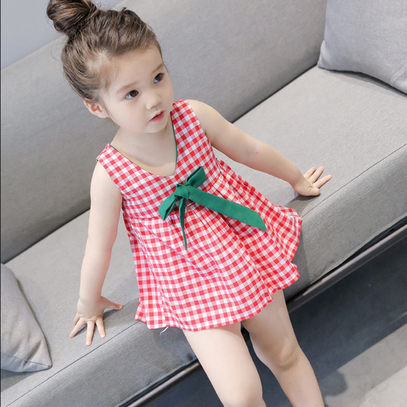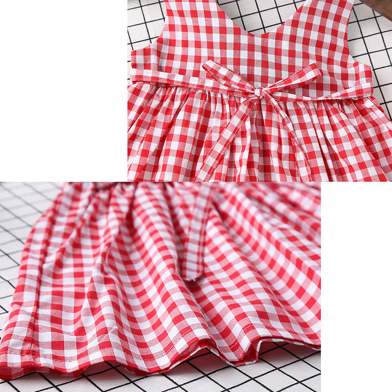 Girls summer foreign style cotton vest skirt Korean version of the little girl plaid skirt baby children's sleeveless dress thin section