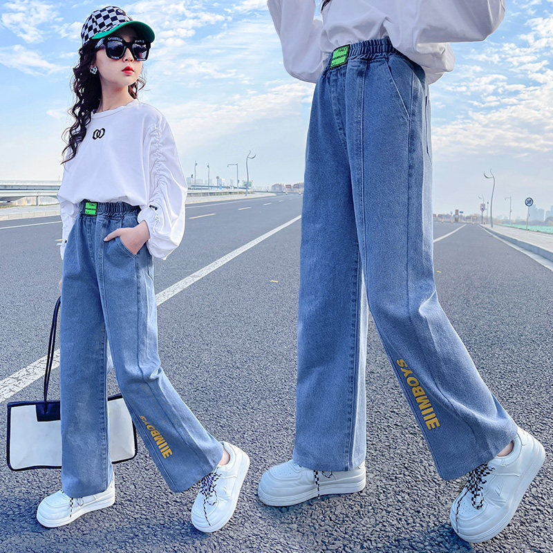 Girl Wide Leg Pants Jeans Fall 2022 New Children Great Boy Heu Body Straight Drum Girl Spring Autumn Slim Fit