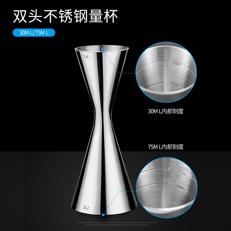 304 stainless steel double-headed measuring cup milk tea shop special ounce cup cocktail bartender measuring cup with scale food grade