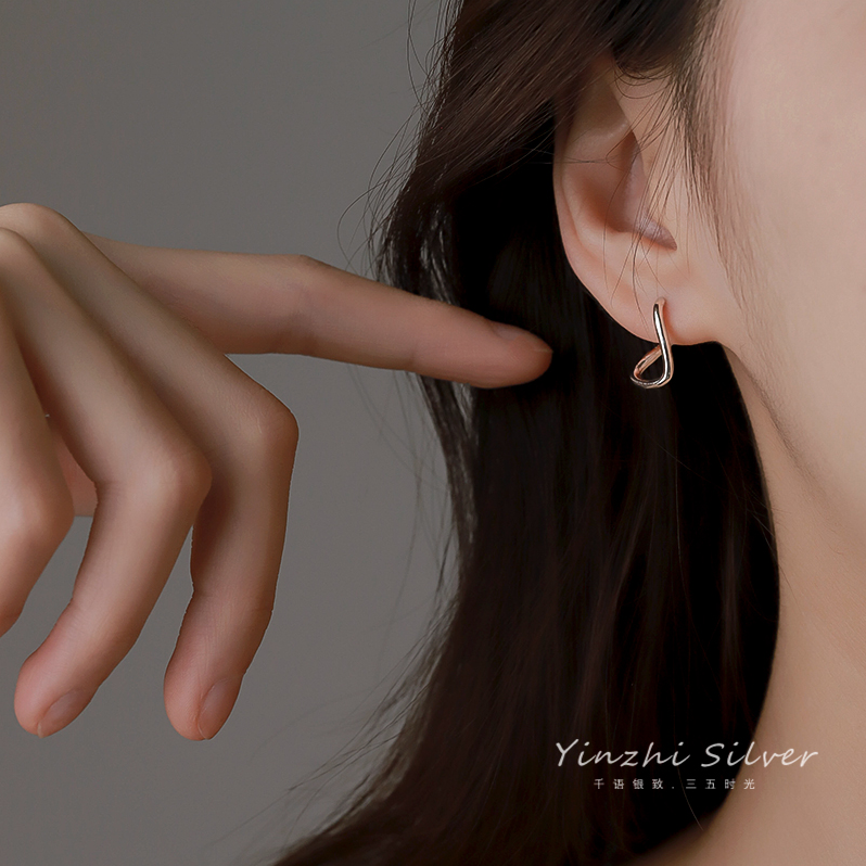 Irregular earrings S925 pure silver earbutton girl 2022 new niche design high - ear wind tide