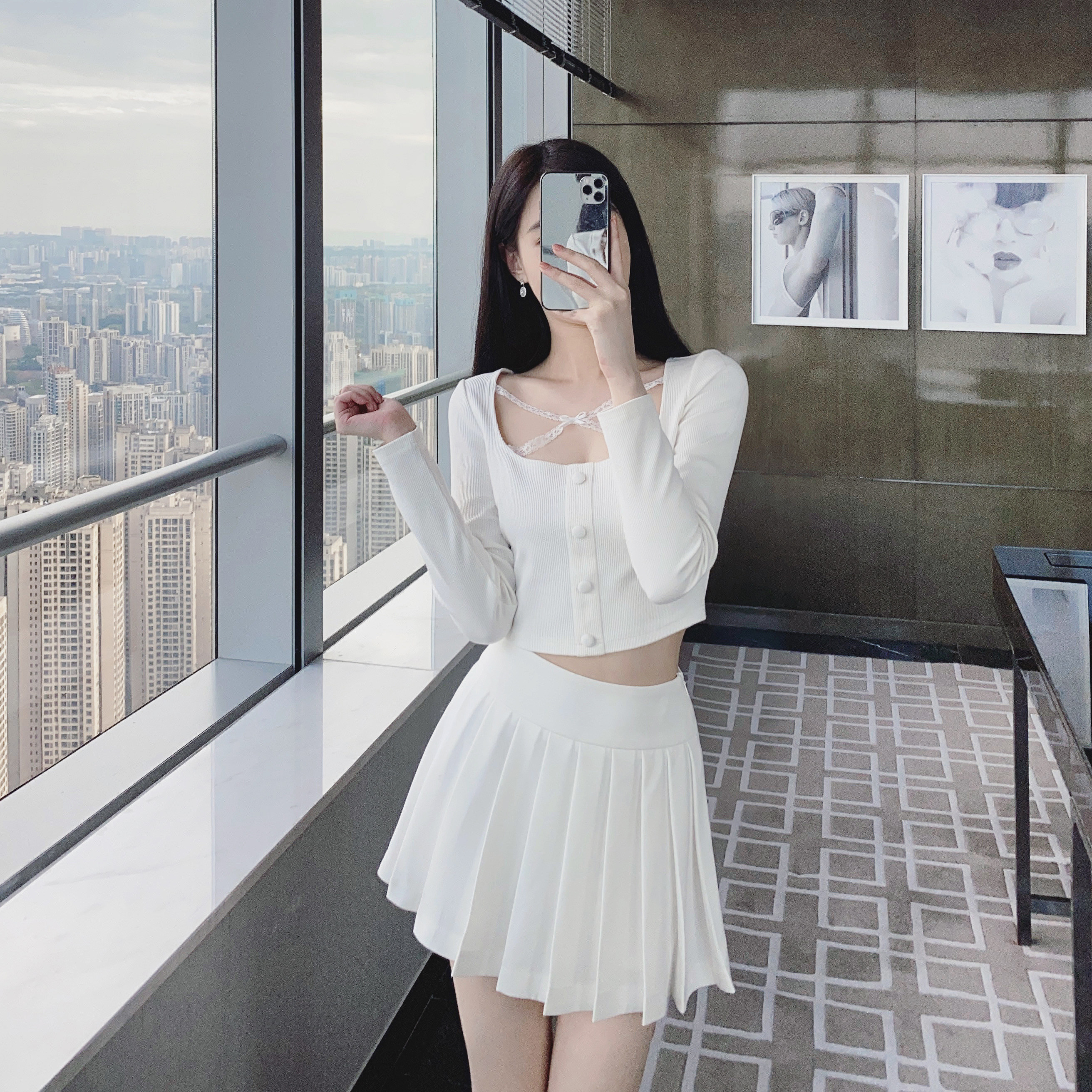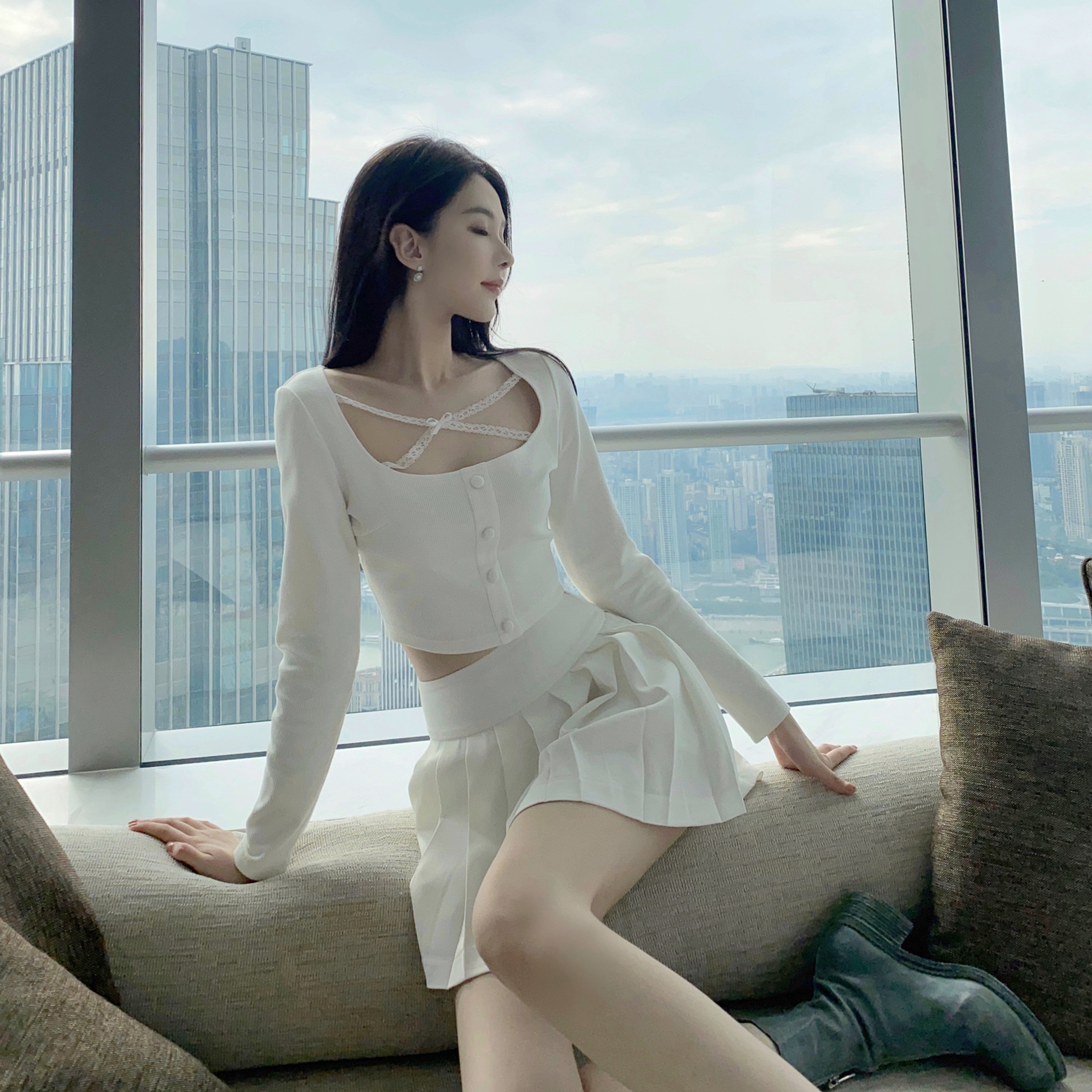 30% off pure white rabbit thin section white French short striped knitted top women's long-sleeved slim v-neck spring and autumn
