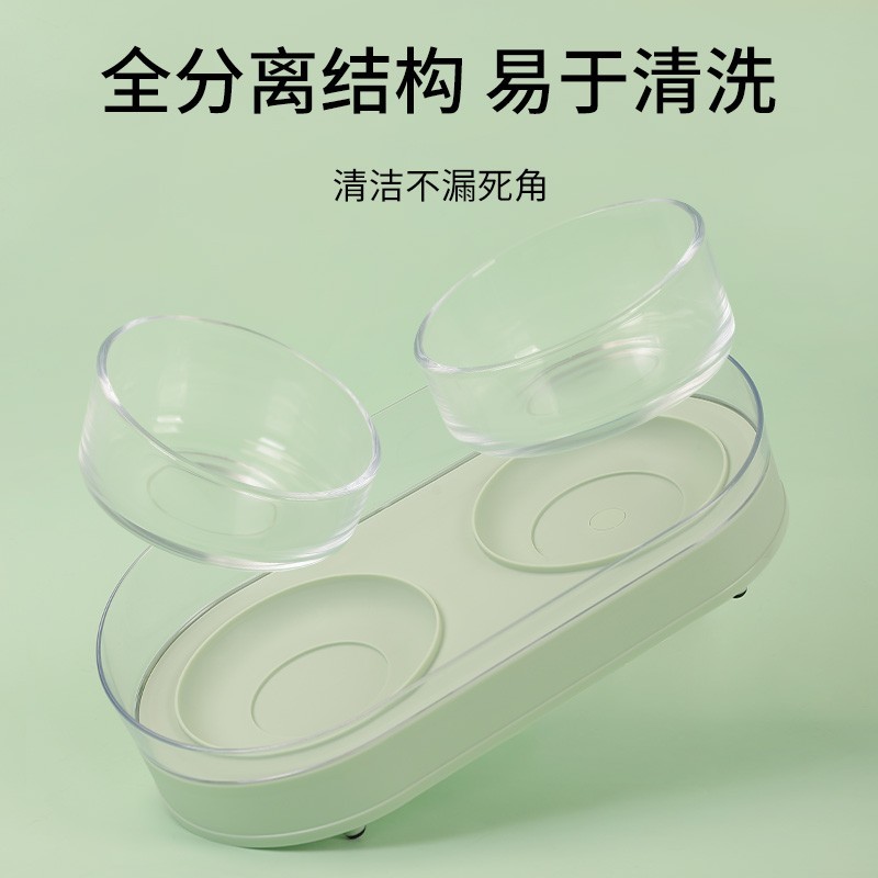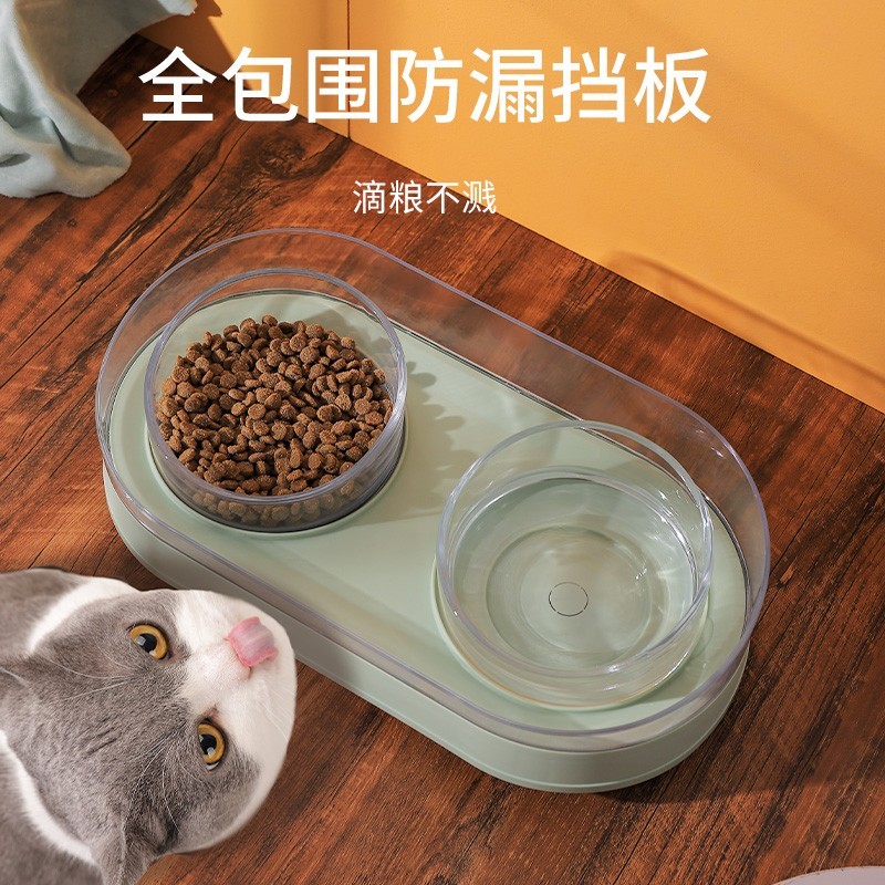 Cat Bowl Glass Cat Food Basin Double Bowl Dog Bowl Pet Bowl Cat Food Bowl Water Bowl Cat supplies to protect cervical spine anti-roll