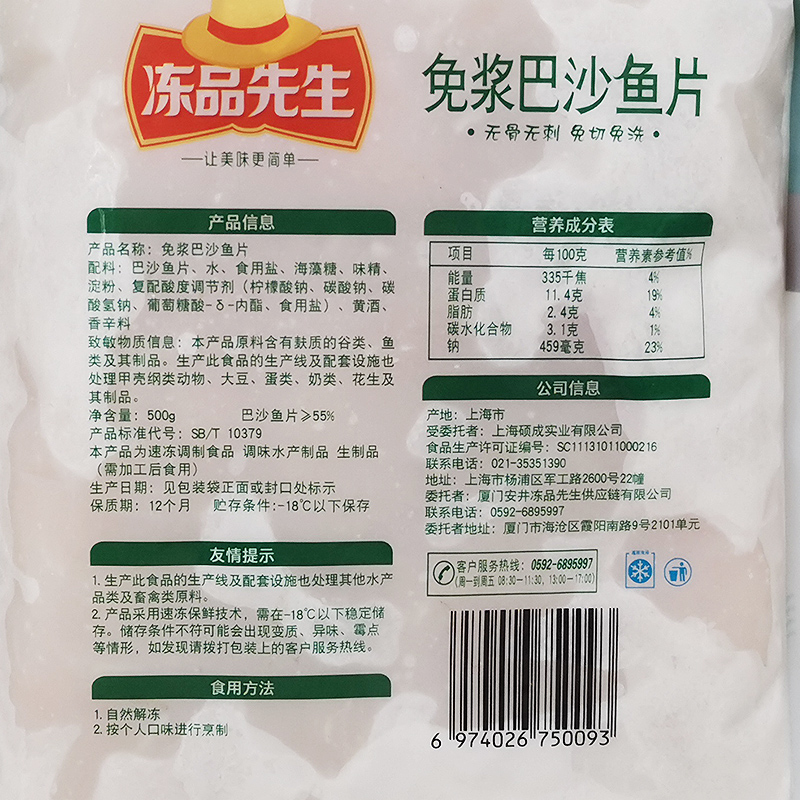 Anjing Freeze Gentleman Basha Fish Fillet 500g Frozen Acid Vegetable Fish Semi-finished Water Cooking Fish Fillet Free From Pulp Commercial Fish Meat