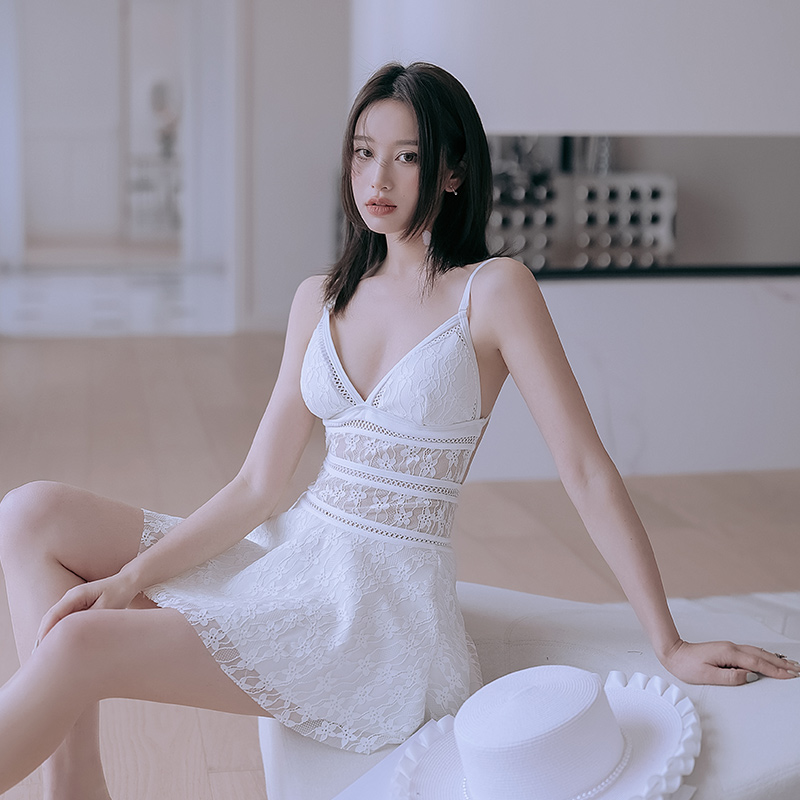 Small Peach Red Swimsuit Women Spa Conservative 2022 New Andromeda Fan Liandress Skirt Belly slim student swimsuit