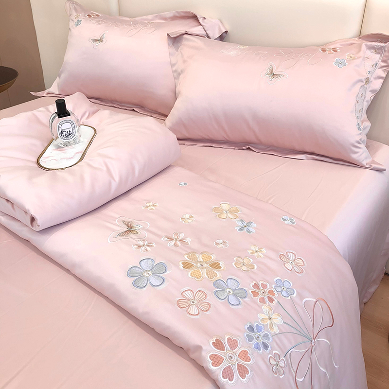 Summer washable true silk air conditioning by four sets of ice silk embroidered summer cool by summer thin quilt princess wind summer quilt
