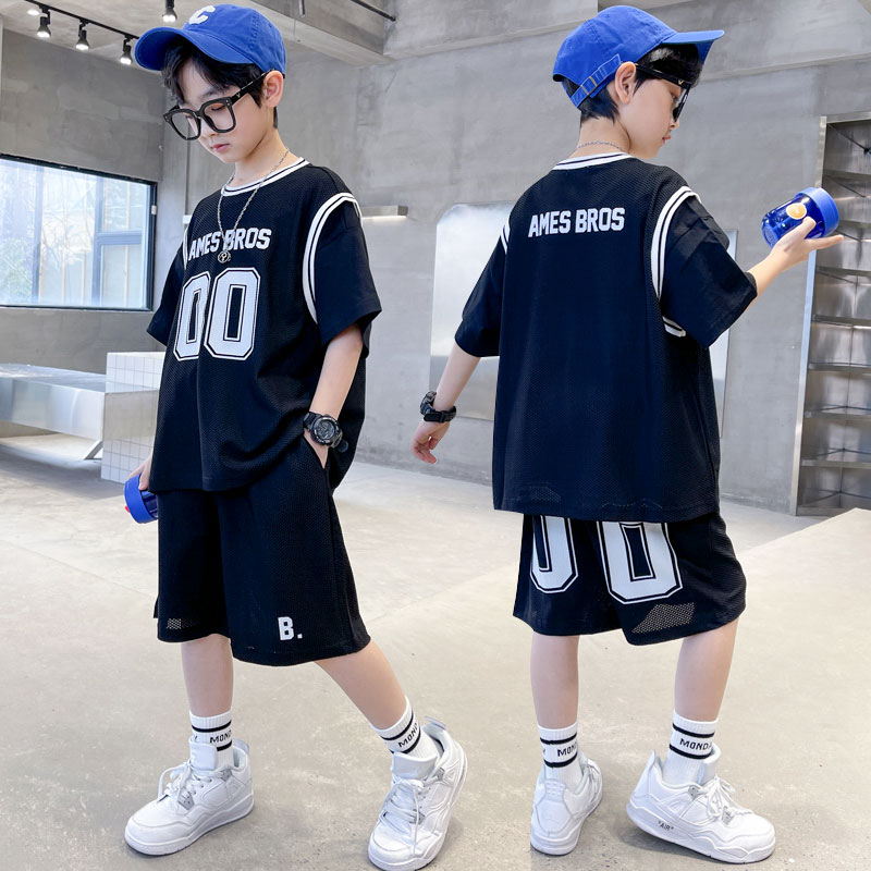 Children Suit Boy Summer Clothing Basketball Suit Suit 2022 New Speed Dry Cool Handsome Summer Sports CUHK Boy Boy Tide
