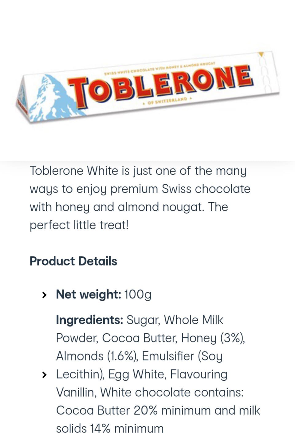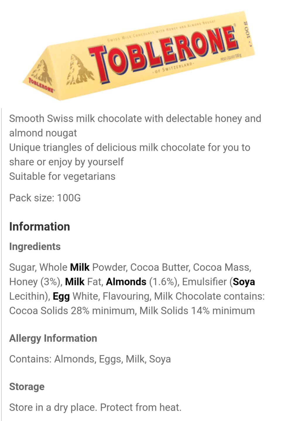 Toblerone Milk Chocolate Dark White Fruit Nut 100g