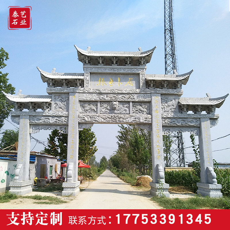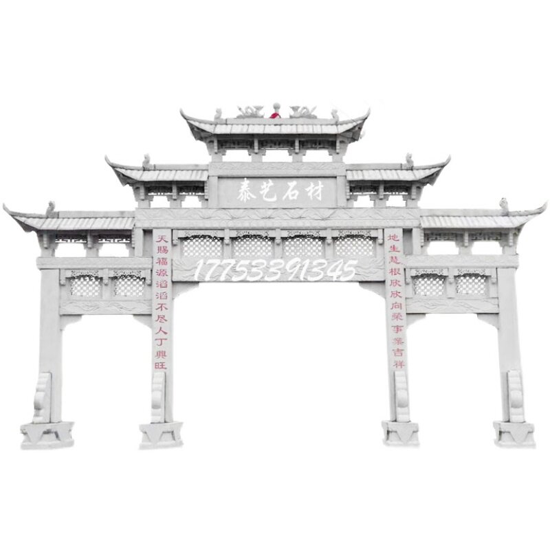 Stone Sculpture Workshop of the Village Entrance Stone Workshop Imitation Ancient Square Temple Ancient Building Single Door Three-Gate Brands Workshop customizable