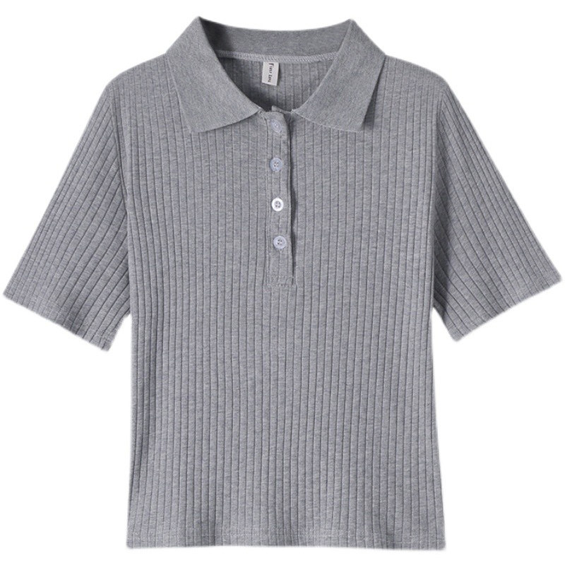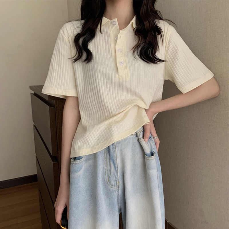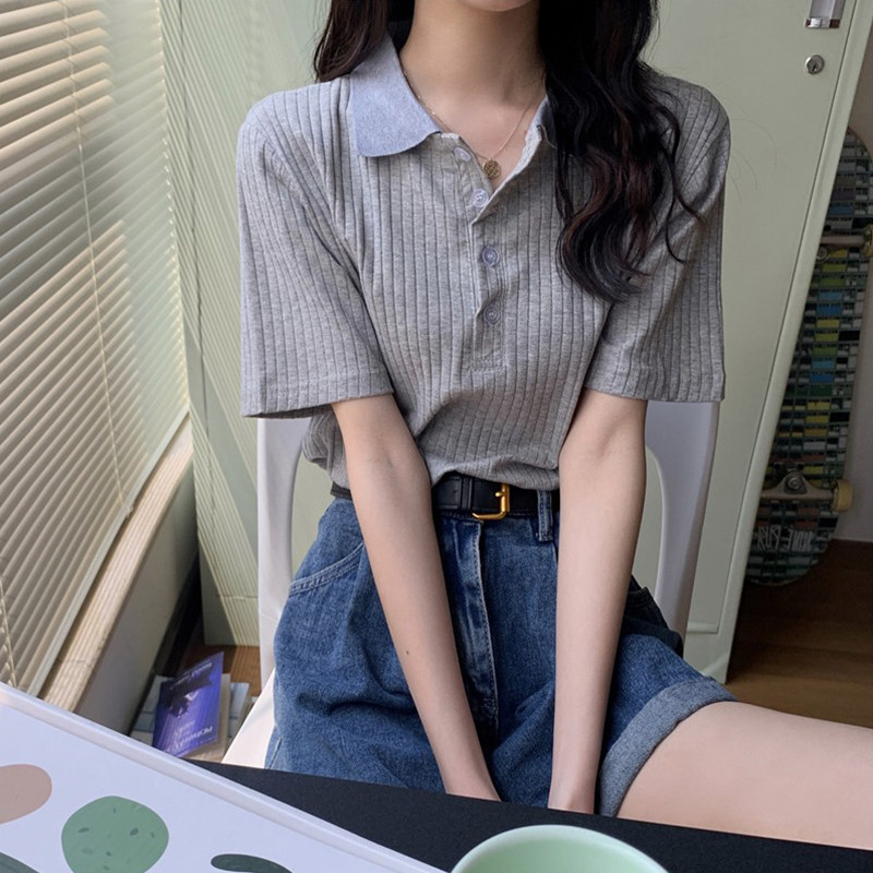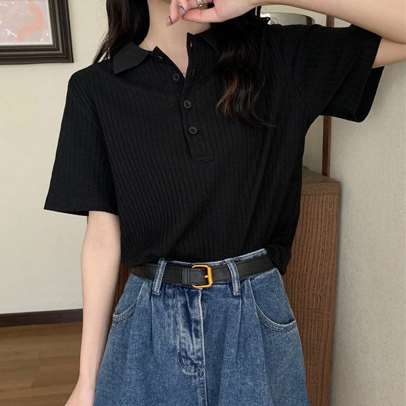 2022 Summer new black Flap Pure Cotton Short Sleeve T-shirt Woman Design Sensation Slim Polo Collar Short blouses