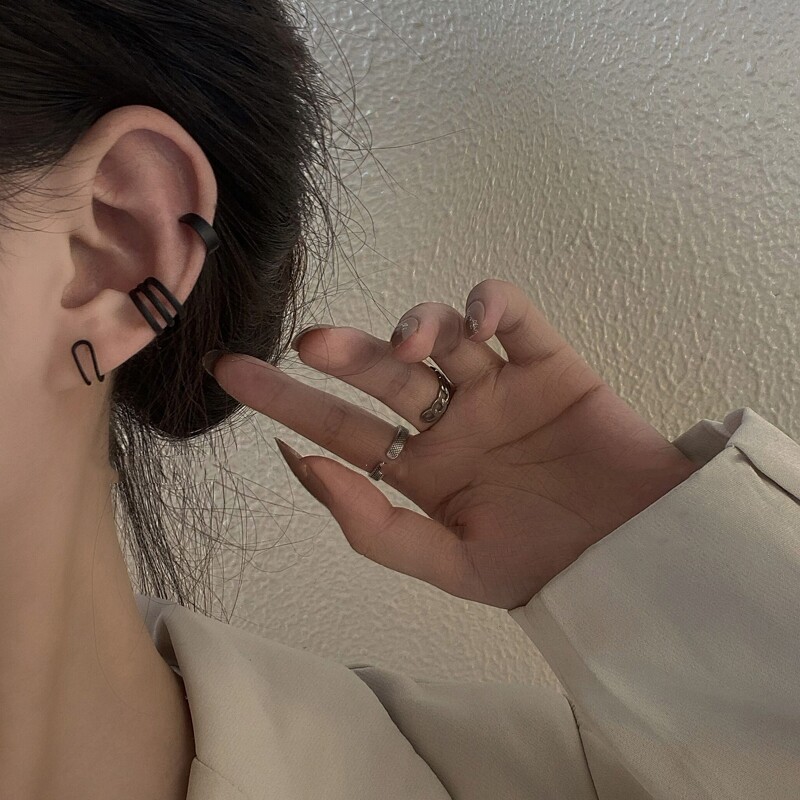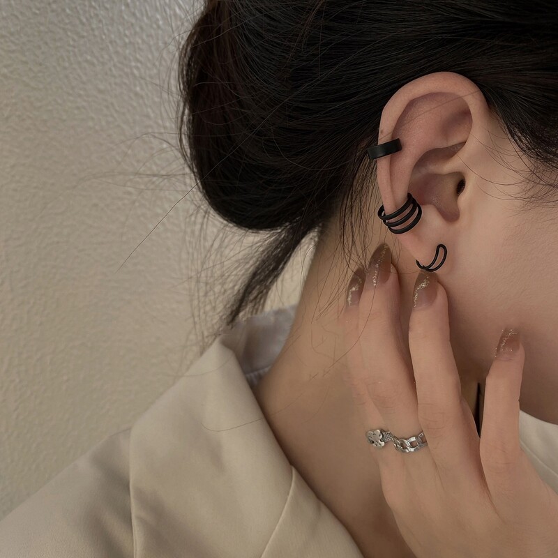 South Korea's new black simple no-piercing ear bone clip female net celebrity temperament fashion ear clip three-piece earrings earrings