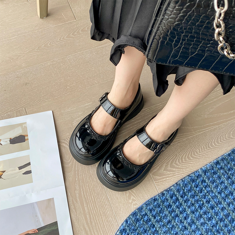 Aeglin Mary Jane small leather shoes women's 2022 spring new round head thick bottom wild Japanese British college style single shoes