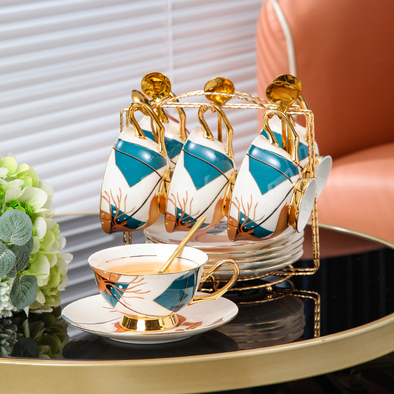 Geometric elk-1 cup saucer and spoon-general geometric elk-1 cup saucer and spoon-gift box geometric elk-2 cup saucer and spoon delivery rack-general geometric elk-4 cup saucer spoon to ordinary rack Geometric elk-6 cups and saucers