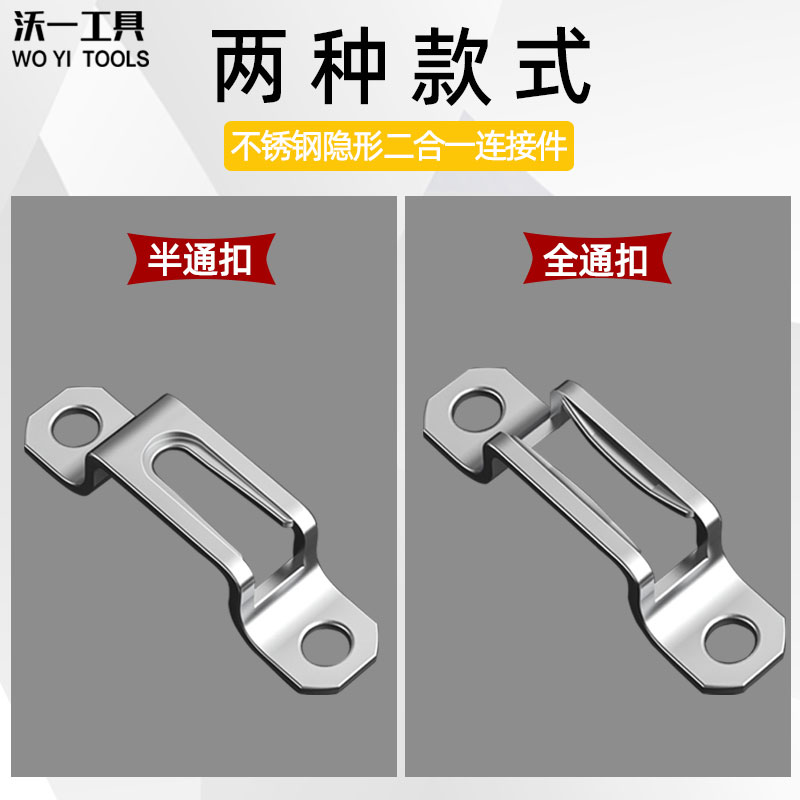 Invisible two-in-one connector screw thickened stainless steel half-through buckle hidden overall cabinet wardrobe furniture hardware accessories