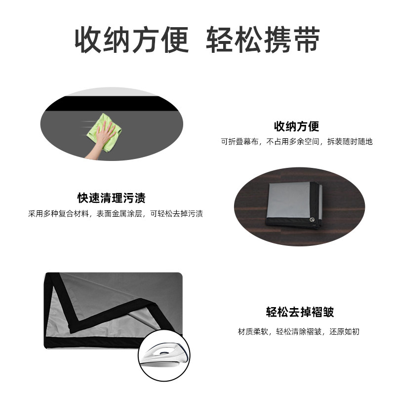 Lejiada projection curtain metal anti-light home curtain folding simple hook 100 110 120 inch high-definition punch-free office business movie screen projection portable cinema screen