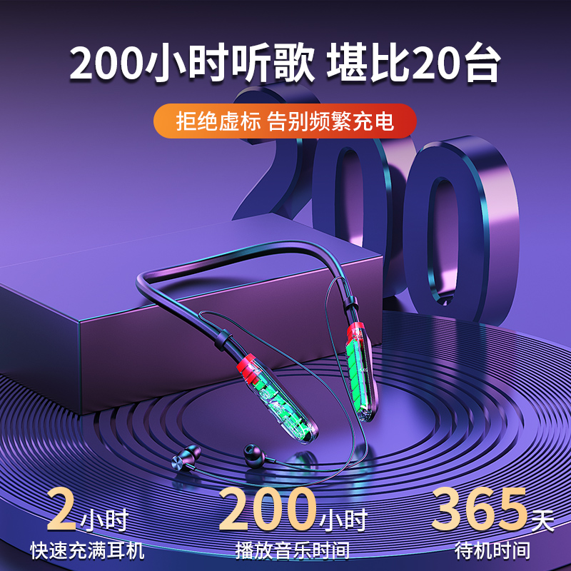 Hilander 2022 New Pint Full-Ear Style] Wireless Noise Reduction Bluetooth Headphones Big Power Super-long Sequel Game Neck Hanging Neck Suitable For Huawei Vivo Xiaomi Oppo Apple Android
