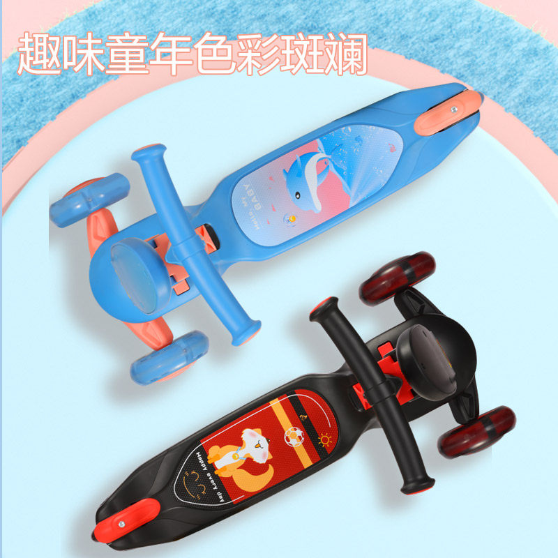 Children's scooter 3-6-12 three-year-old two-in-one large child folding slide tackle boy girl boating a car-Taobao