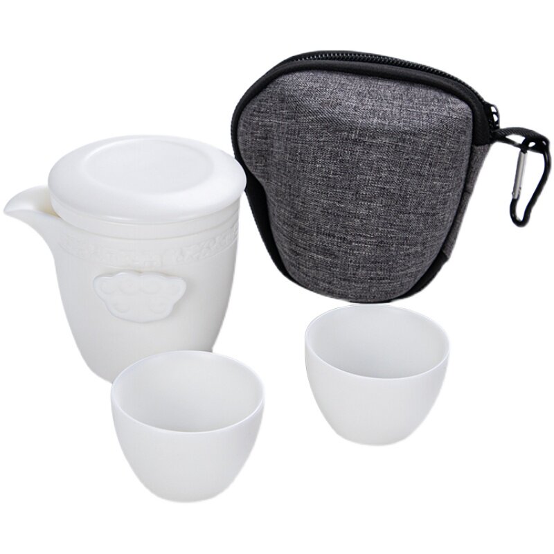 Suet Jade White Porcelain Travel Tea Set Teacup Kung Fu Tea Set Simple Quick Cup One Pot Four Cups Portable