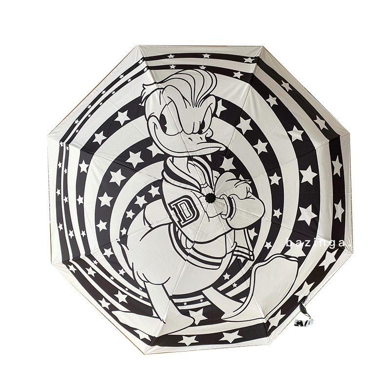 3fter Donald Duck fully automatic umbrella female ins wind sunshade three folding sunny and rainy dual-use sunscreen vinyl sun umbrella