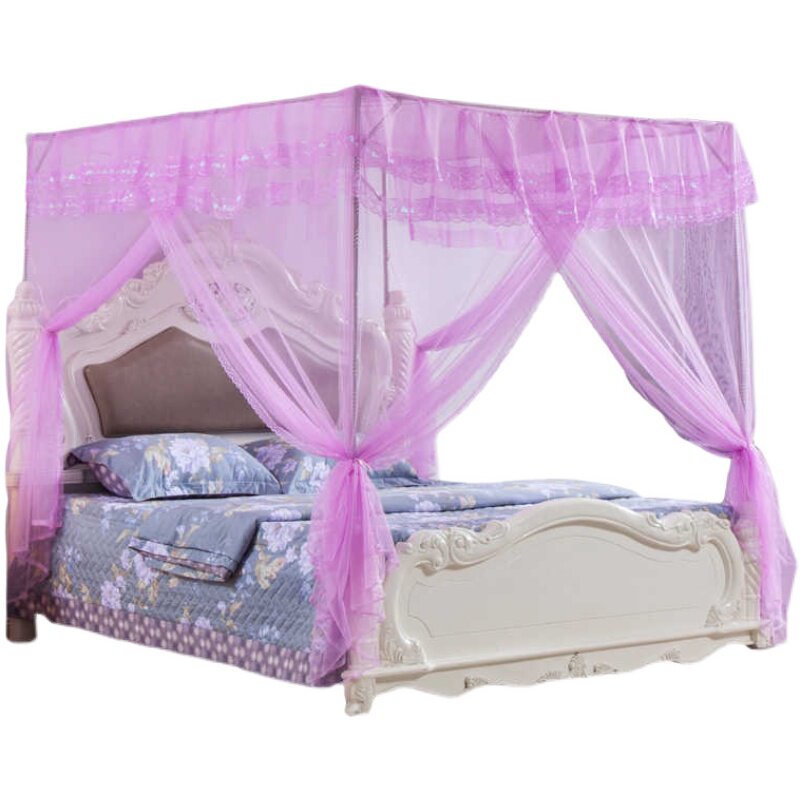 Mosquito net stainless steel reinforcement upgrade version three-door encrypted palace household 1 8m bed presser foot free installation to send hanging rod