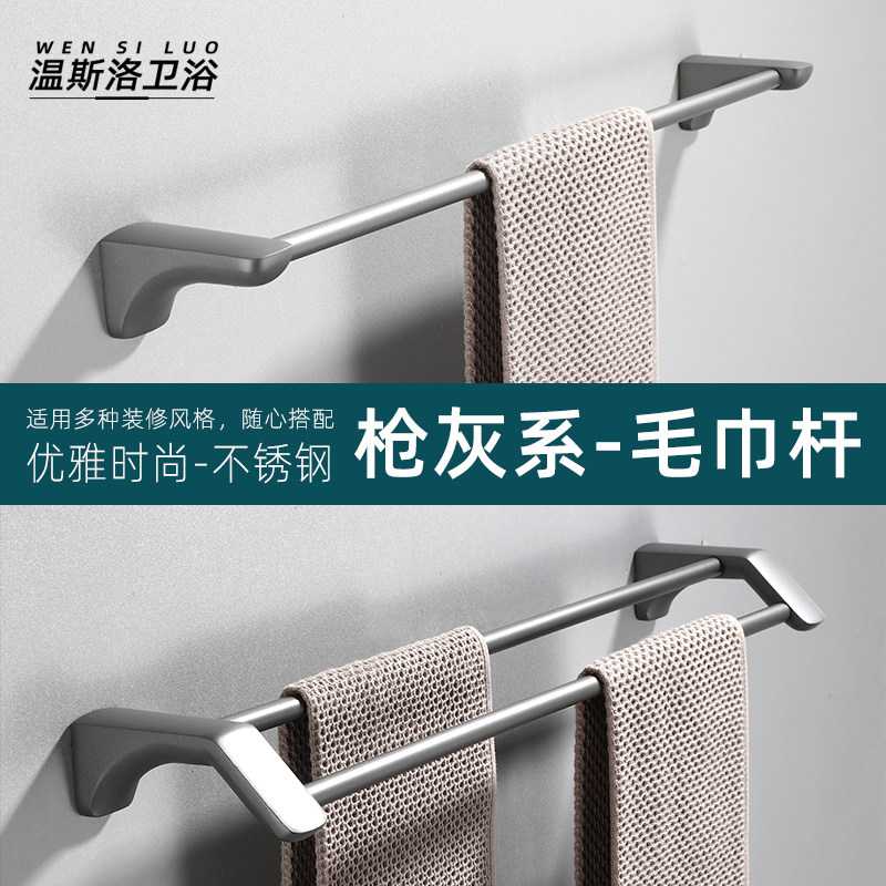 Gun Grey Toilet Fur Towel Rack Bath Towels Stainless Steel Single Rod Towel Rod Free of perforated Bathrooms Racks Racks-Taobao