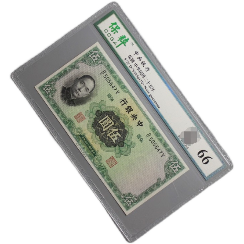 1936 Central Bank Sun Xianglv Wuyuan Huade Road Edition Banknotes of the 25th Year of the Republic of China Paulist rating 66 points