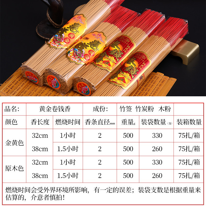 Gold roll money incense smoke-free incense God of wealth incense home for incense ceremony Buddha incense sandalwood Guan Gong Guanyin Bodhisattva fairy home line incense