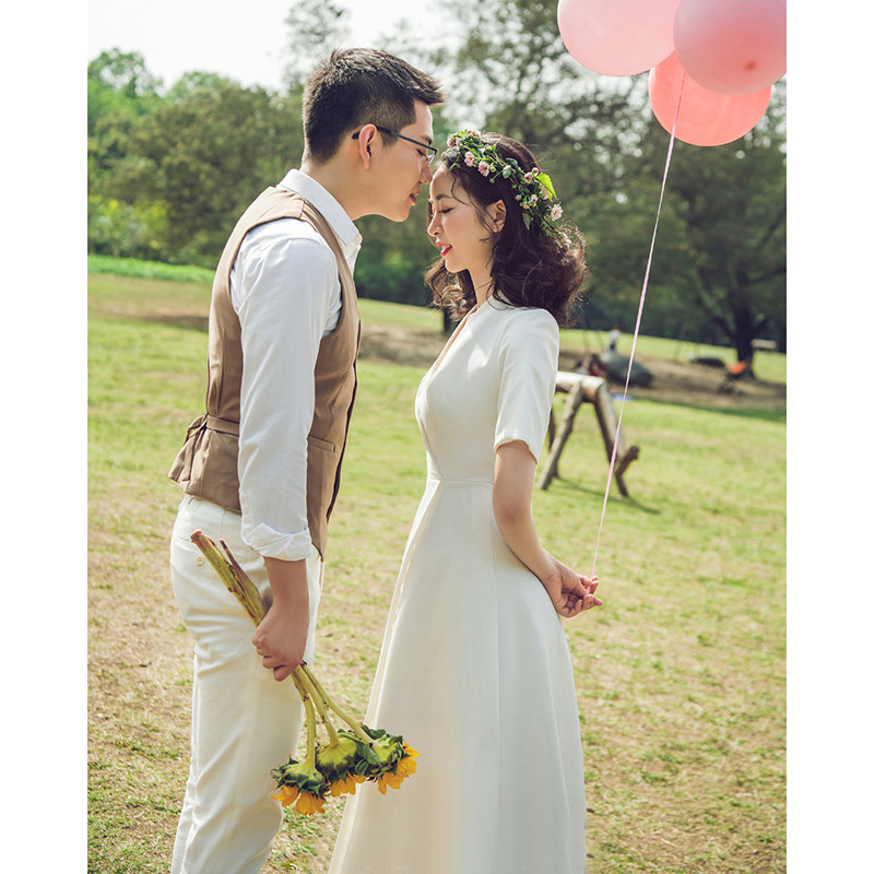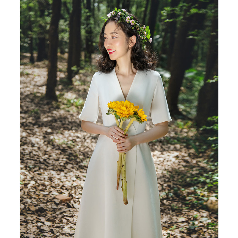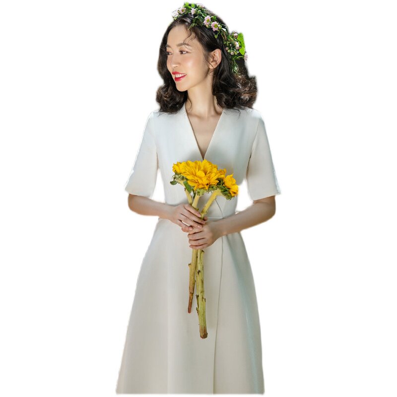License registration of small white dress briefly dress French satin - face simple daily wear dress 2022