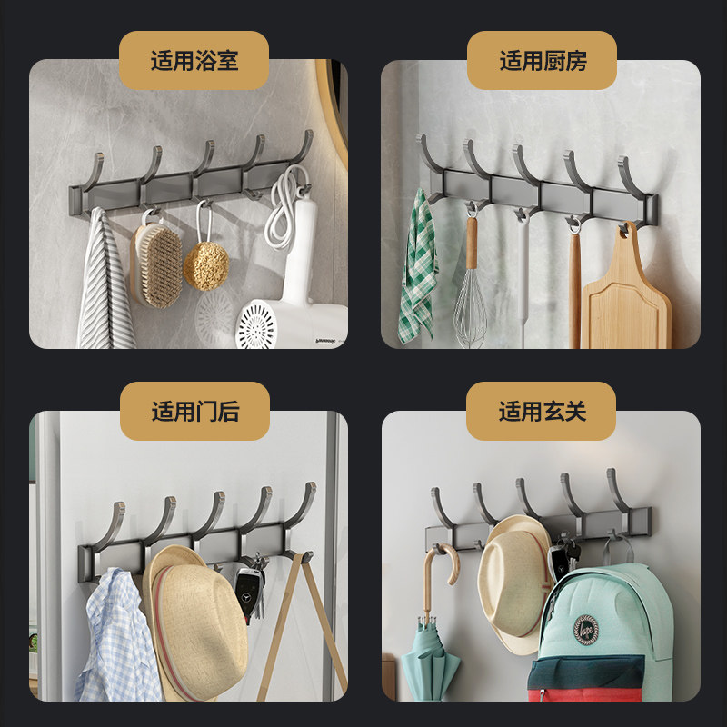 Gun Ash-Row Hook 5 Hooks Light Lavish-Bathrooms 5 hooks for black-Hook 5 Hooks