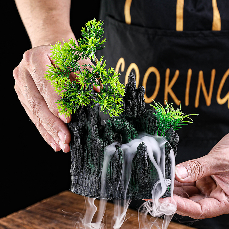 Sashimi Swing Tray Decoration Dry Ice Small Pot Dry Ice Cup Fake Mountain Days Style Small Pendulum with Mood Cold Dish decorated with flowers and grass