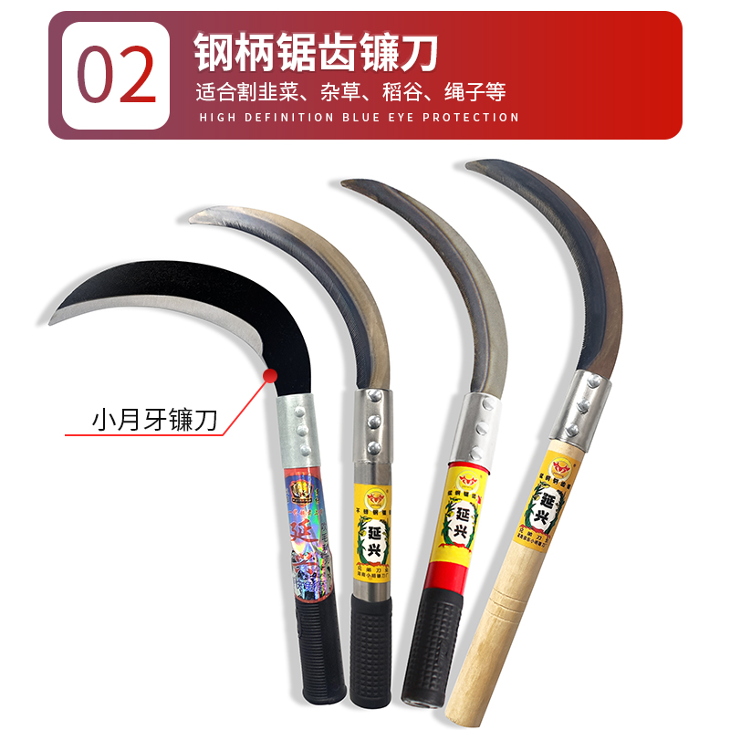 Agricultural sickle outdoor mowing greening harvesting weeding tool stainless steel crescent leek cutting rice knife farm tool