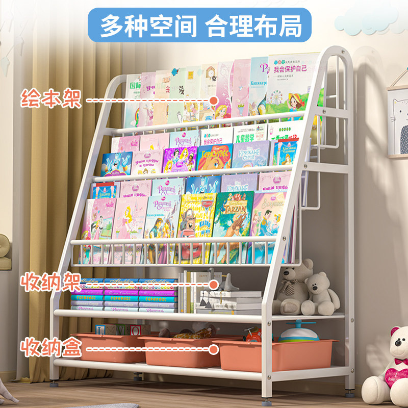 Children's iron art bookshelves Easy drawing of this frame Baby shelve integrated home floor economy-type toy storage cabinet