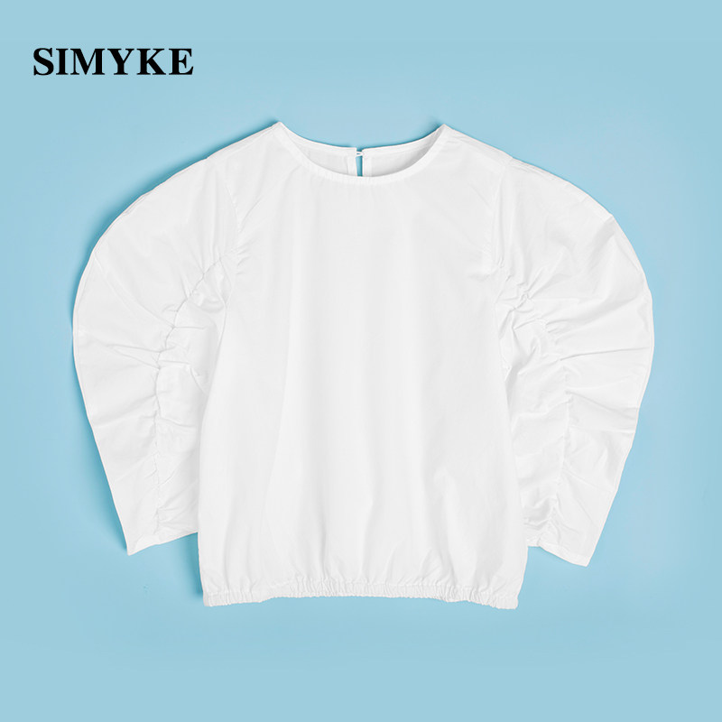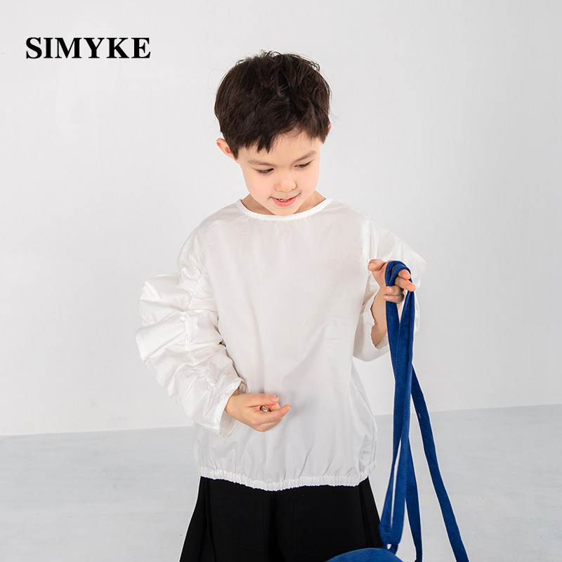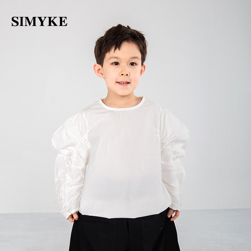simyke walk show summer boomer children's bubble sleeve t shirt loose and thin long sleeve white chen art male and female child