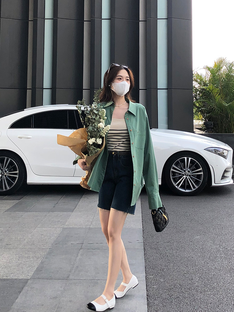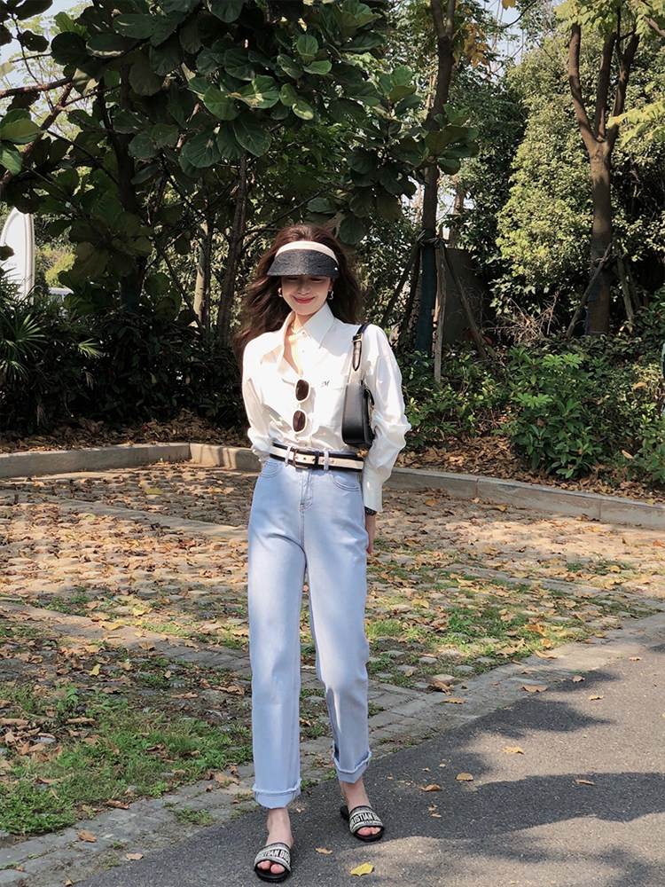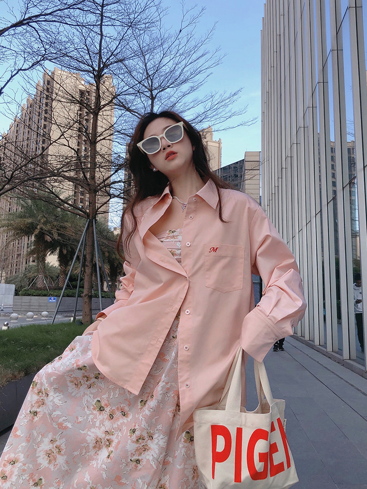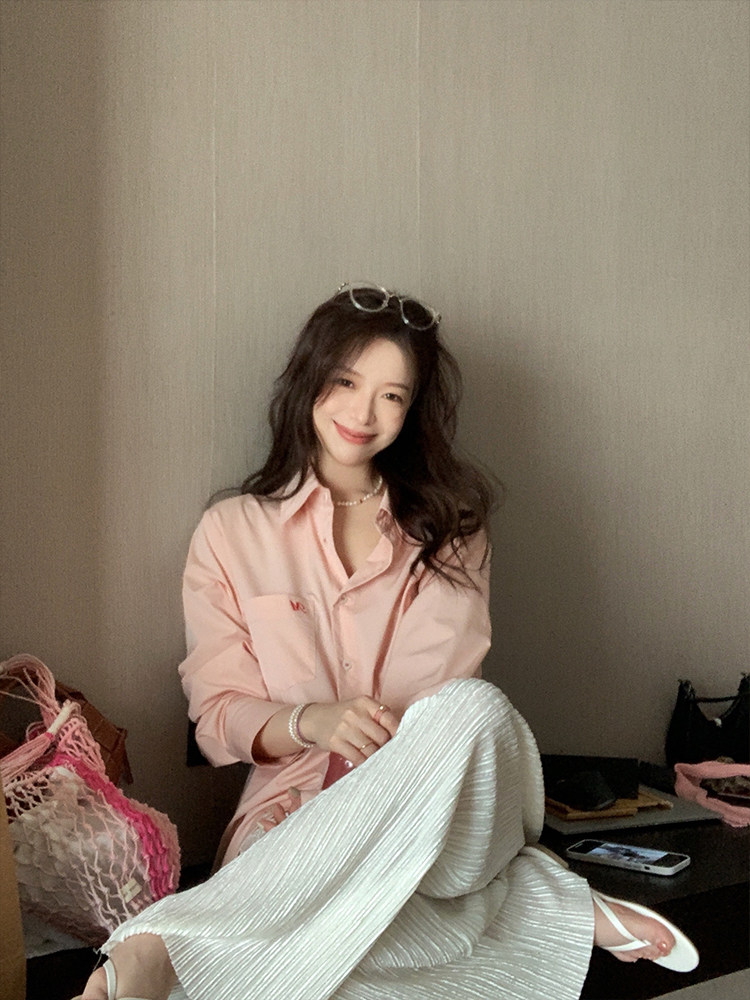 TMH STUDIO Spring peach wine acetate shirt women's summer high-quality sunscreen white shirt embroidery long-sleeved top