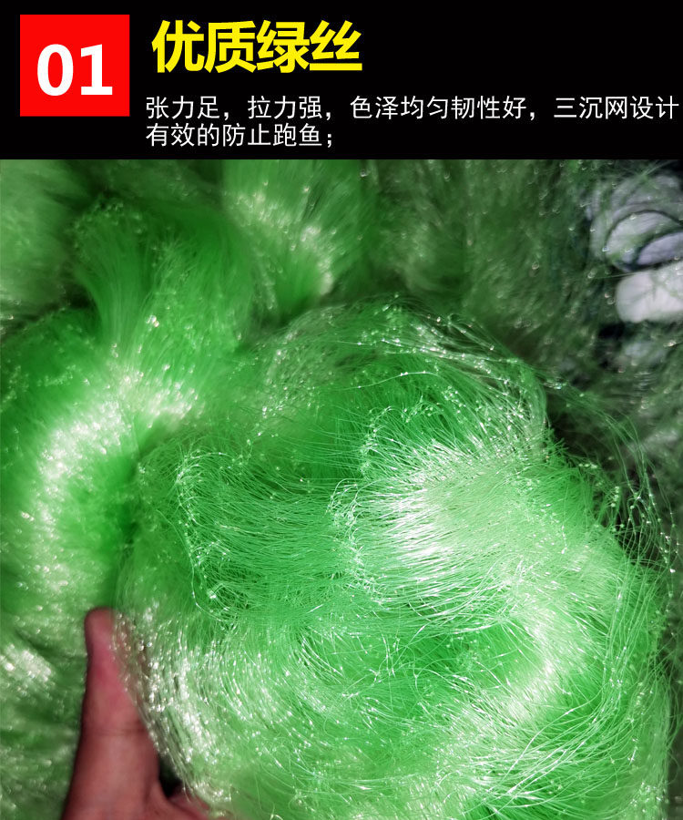 Imported green silk three-layer floating net fishnet sticky net 200 meters long bag pendant fishing net soft silk fishing net reservoir net rope pendant 6