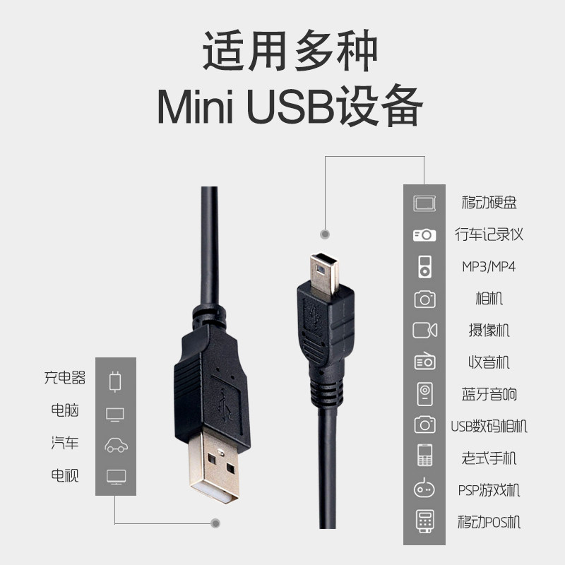 Mini usb data cable T-port MP3 adapter MP4 connection universal mobile hard disk universal pos download line