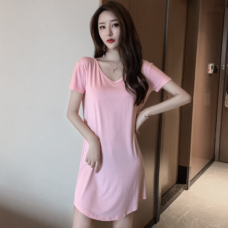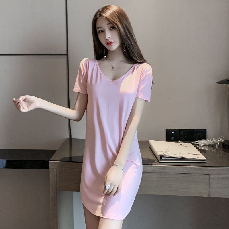 Sleeping dress female short - sleeve Model pure cotton 2023 new pregnant woman loose large - code exposure back cross pajamas