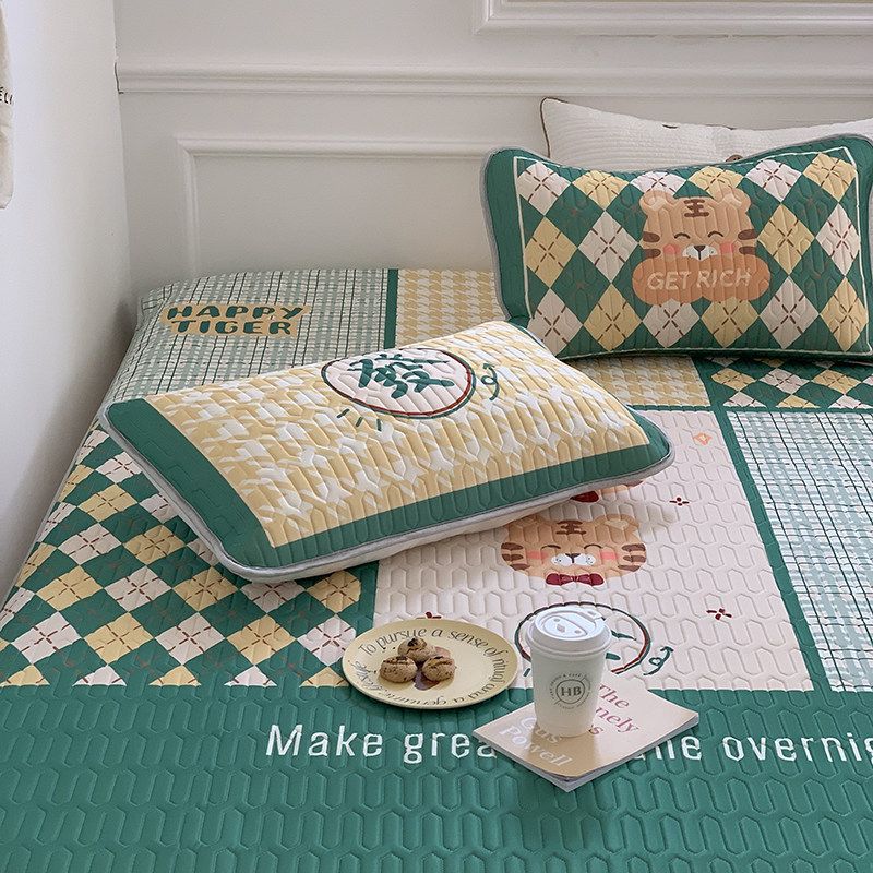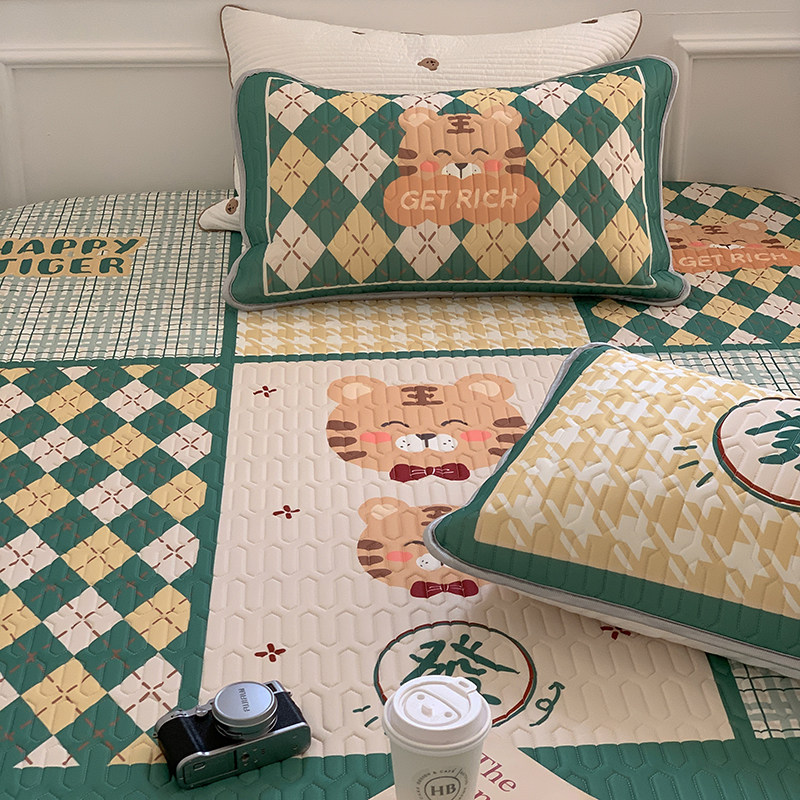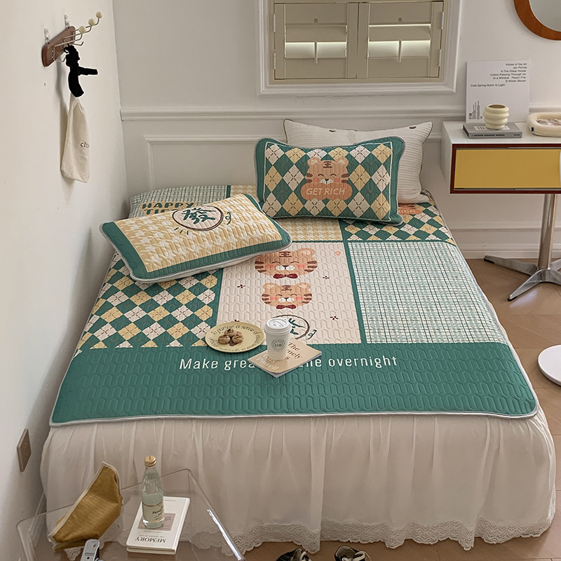 Cute Green Little Tiger Latex Cool Mat Three Sets Cartoon Summer Washable Air Conditioning Ice Silk Soft Mat 1 5m