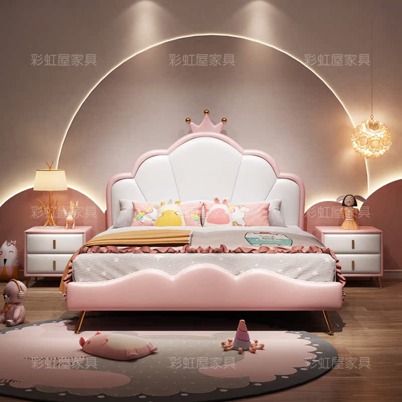 Net red children's soft girls soft mute small apartment type solid wood children's room combination set 1 2 high box crown leather mule