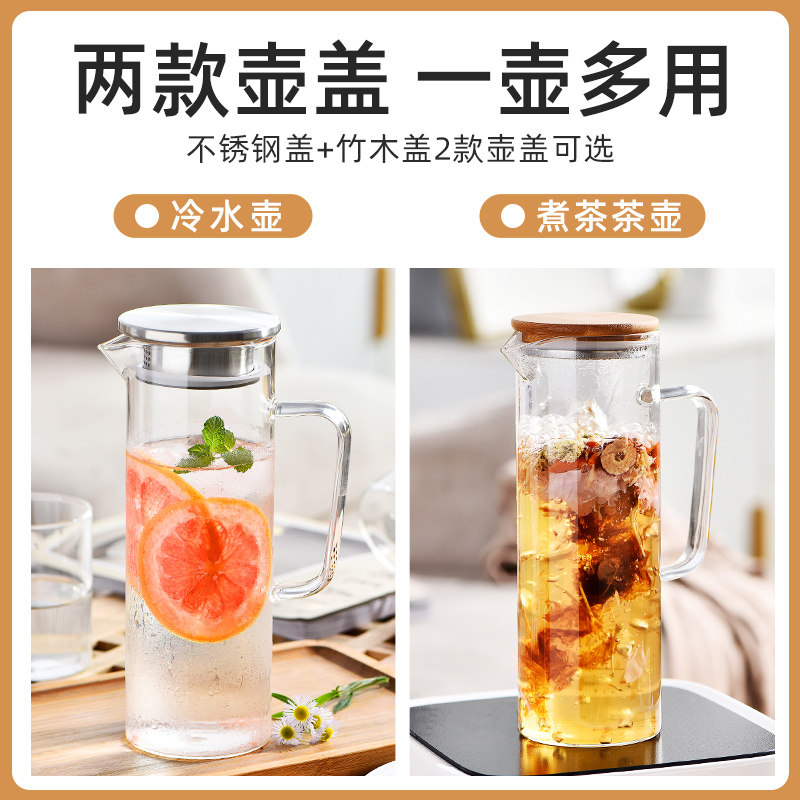 Glass heat resistant high temperature explosion protection cold water jug home large capacity water bottle cool white open water cup teapot set cold water pot
