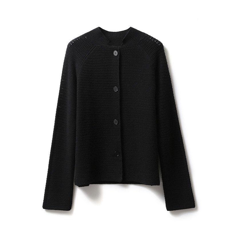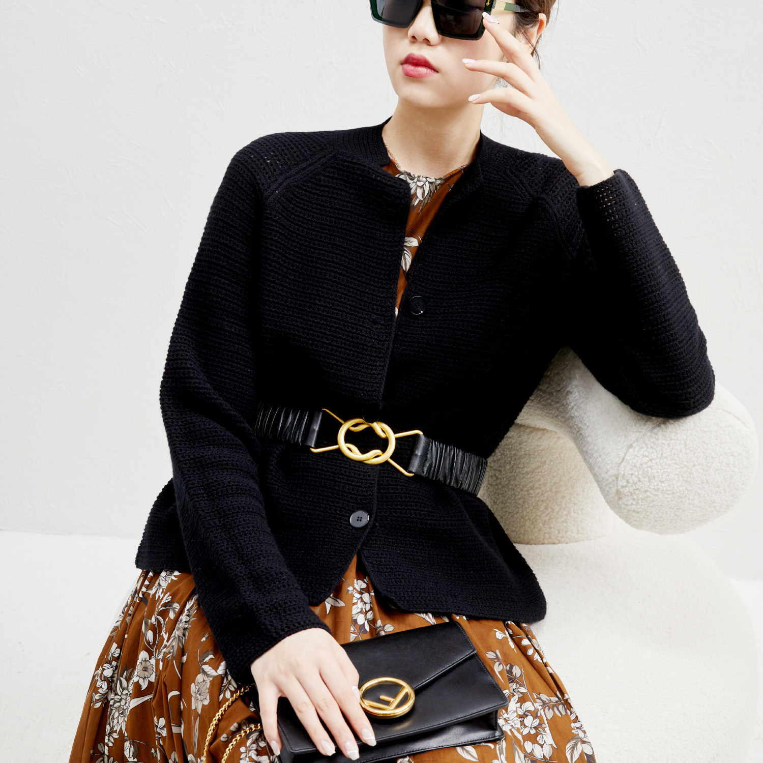 Jung Mei (ZZ0312735) spring and summer new full wool hollowed-out jacquard knit cardiovert hand hook stand collar