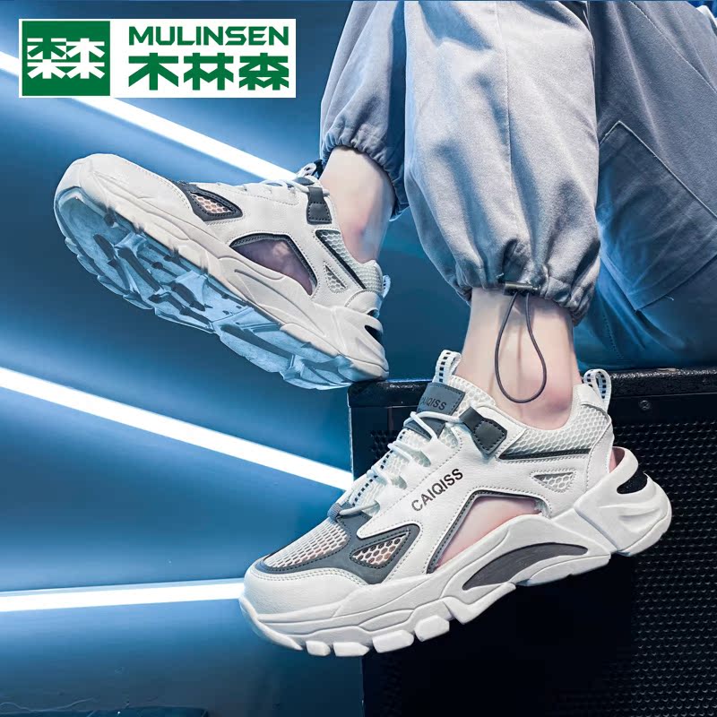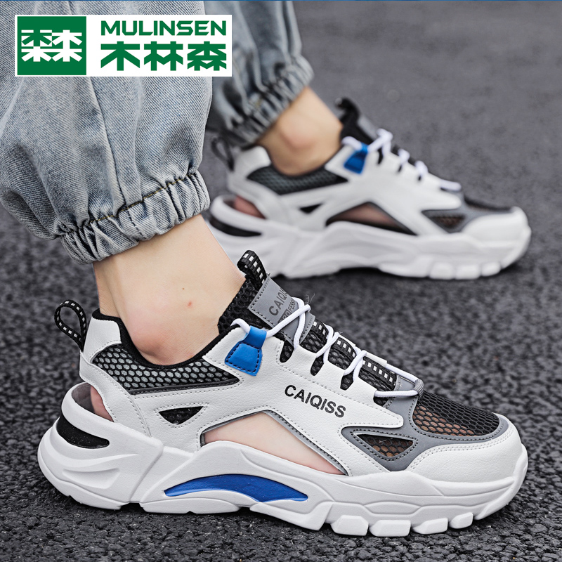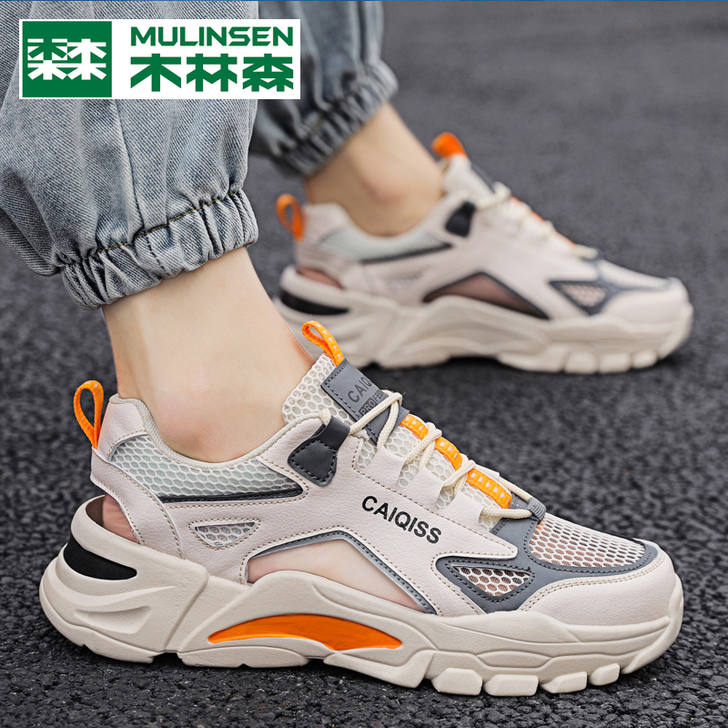 Wood Linson Sandals Sandals Men's Summer Outwear 2022 New Casual Slippers Breathable Hollowed-out Sport Baotou Beach Shoes