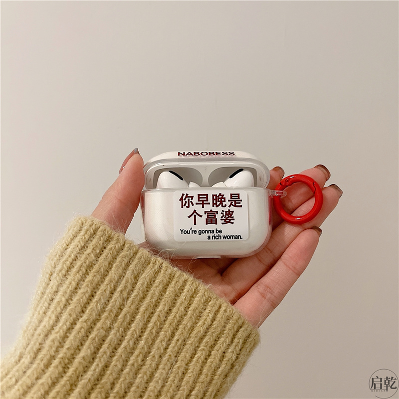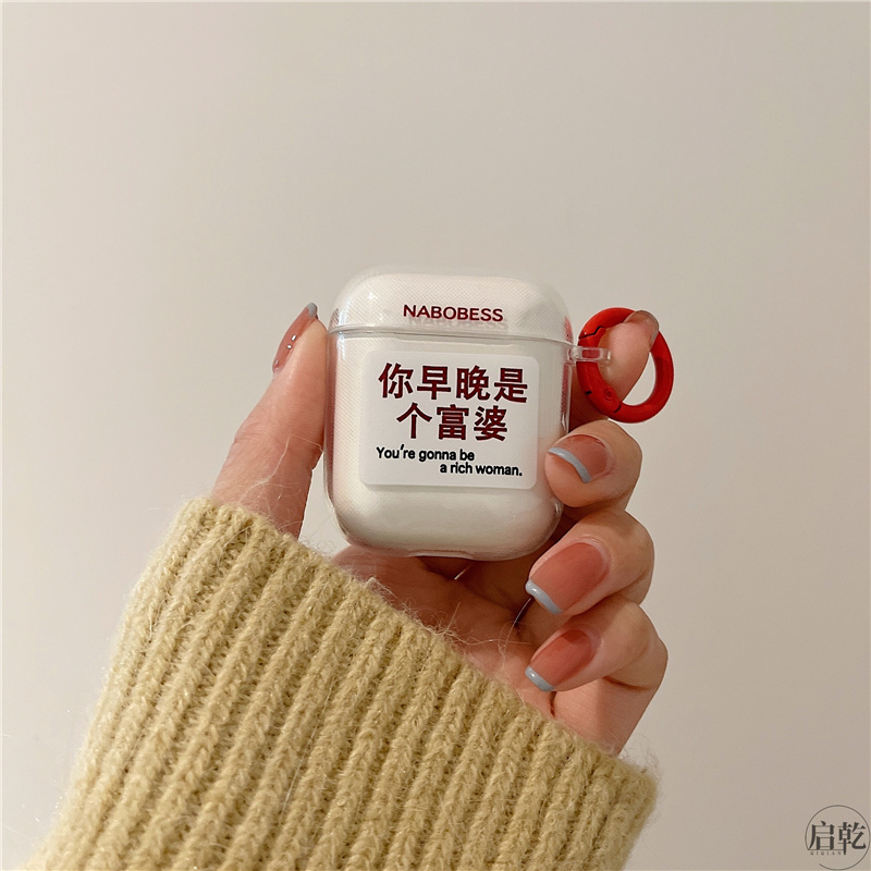 Sooner or later you are a rich woman Airpods protective case 2 generation pro third generation new personality creative niche text for Apple wireless Bluetooth headset 2 generation silicone transparent soft shell woman