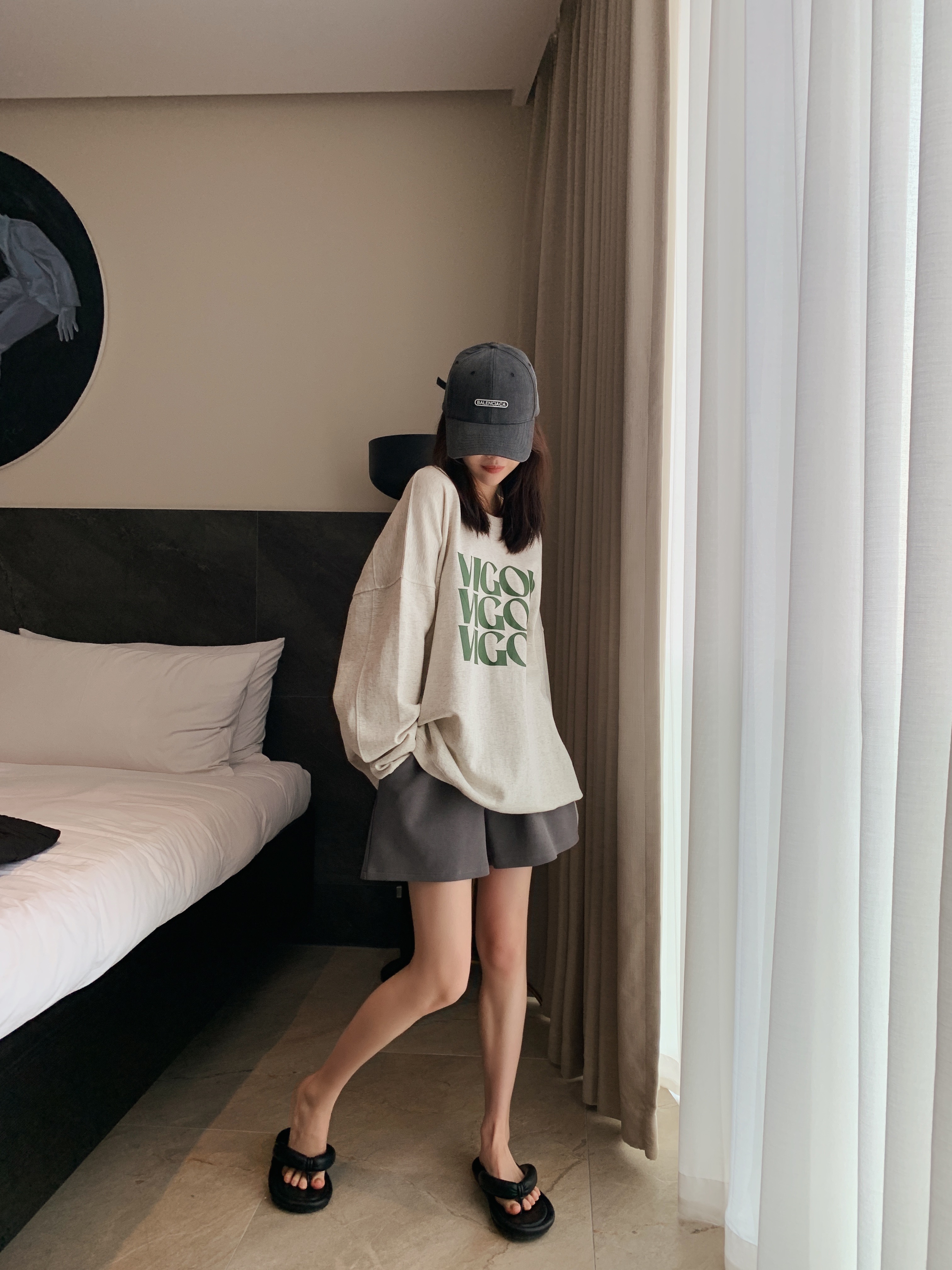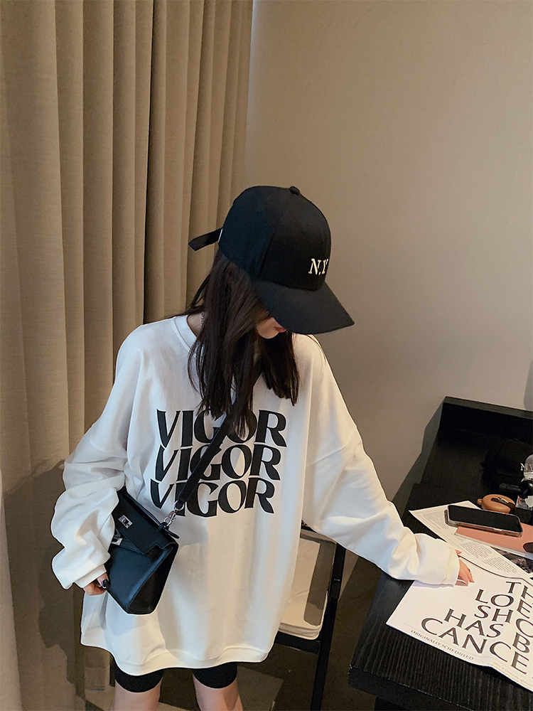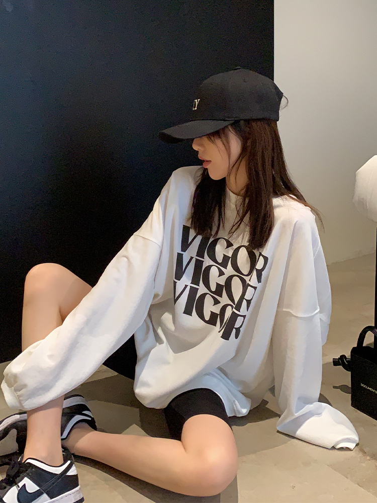 Small chant customised American white long sleeve T-shirt female spring summer thin section loose casual Lazy Breeze Pure Cotton T-shirt Blouse
