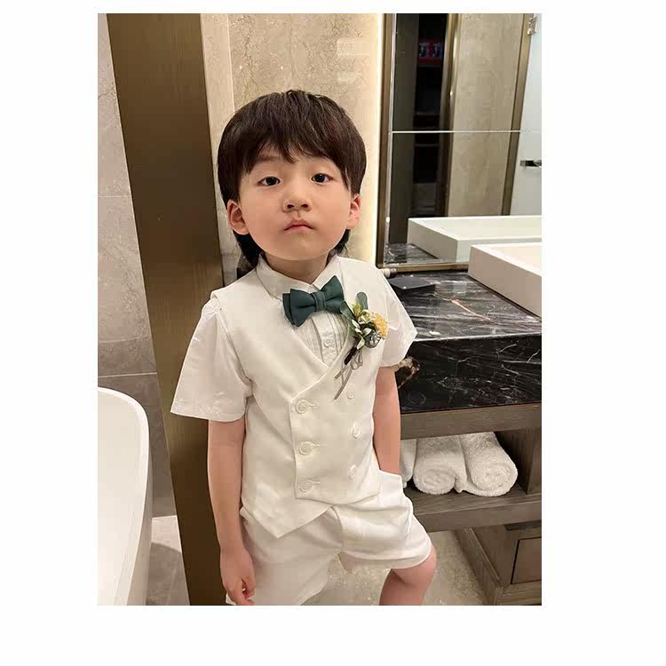 Flower Boy Boy Suit Suit Summer Boy Little Host Dress Rehearsal for children Machia vest shorts Three sets