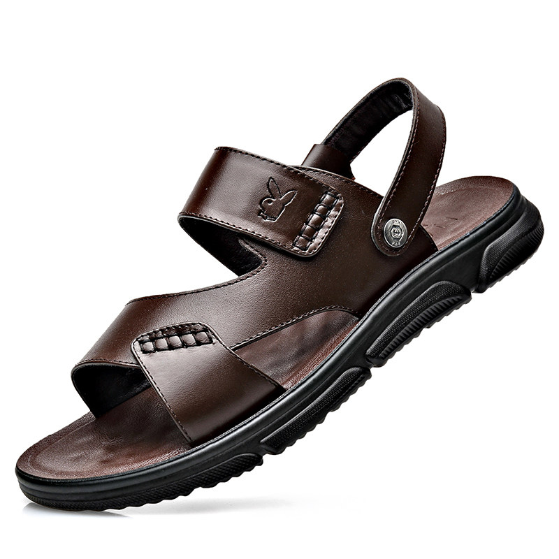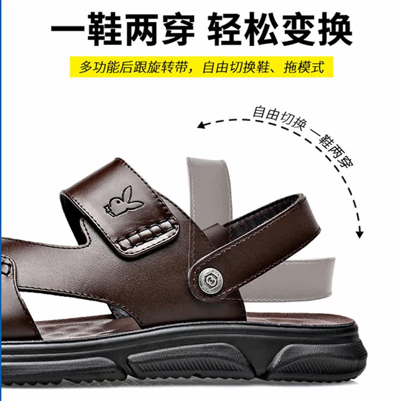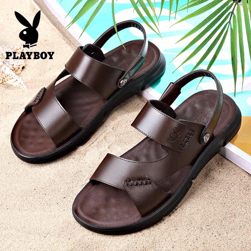 Playboy sandals men's 2022 new summer leather beach shoes soft bottom non-slip wear-resistant casual sandals